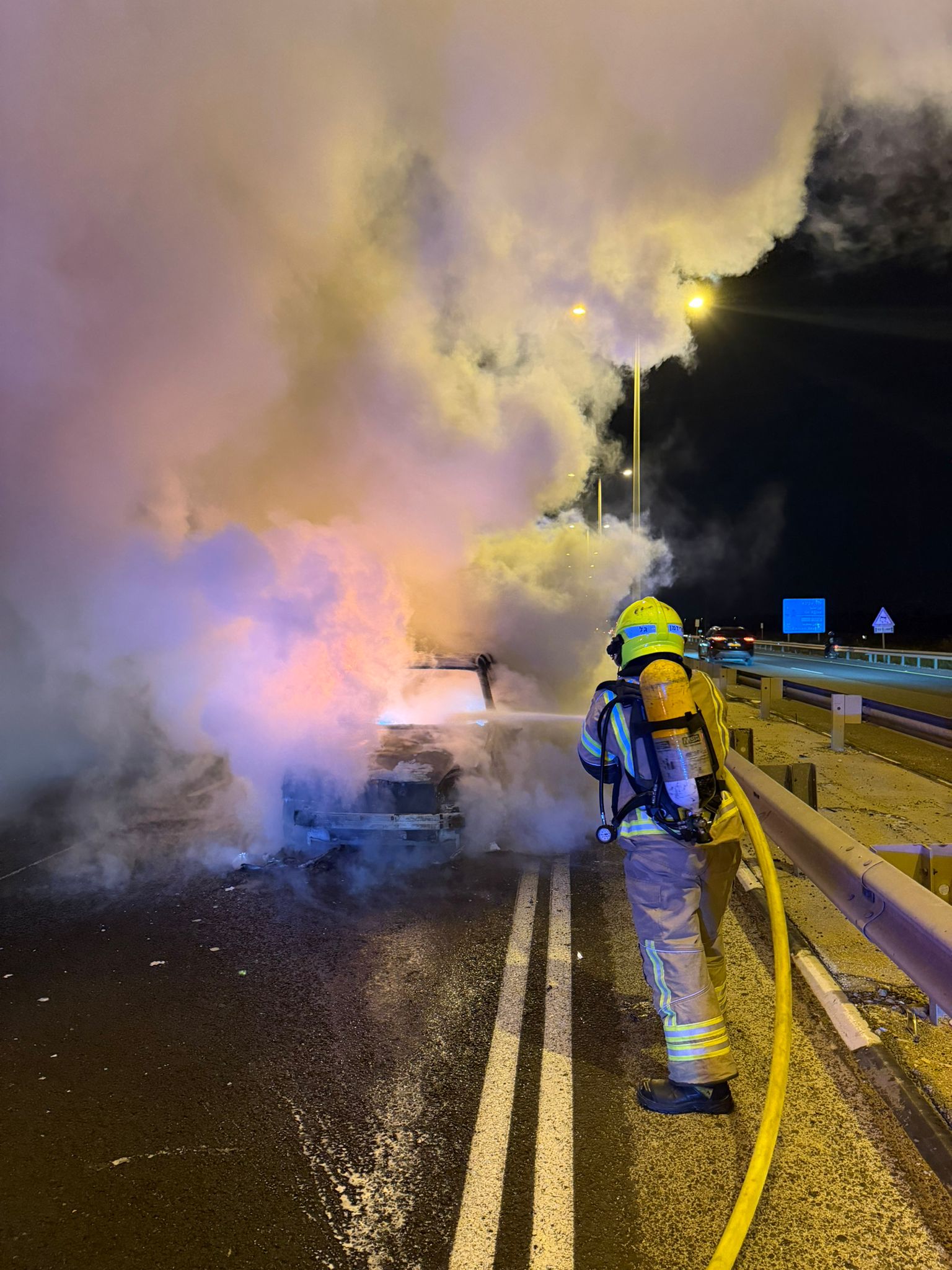 اندلاع حريق بسيارة على شارع رقم 4 في الخضيرة