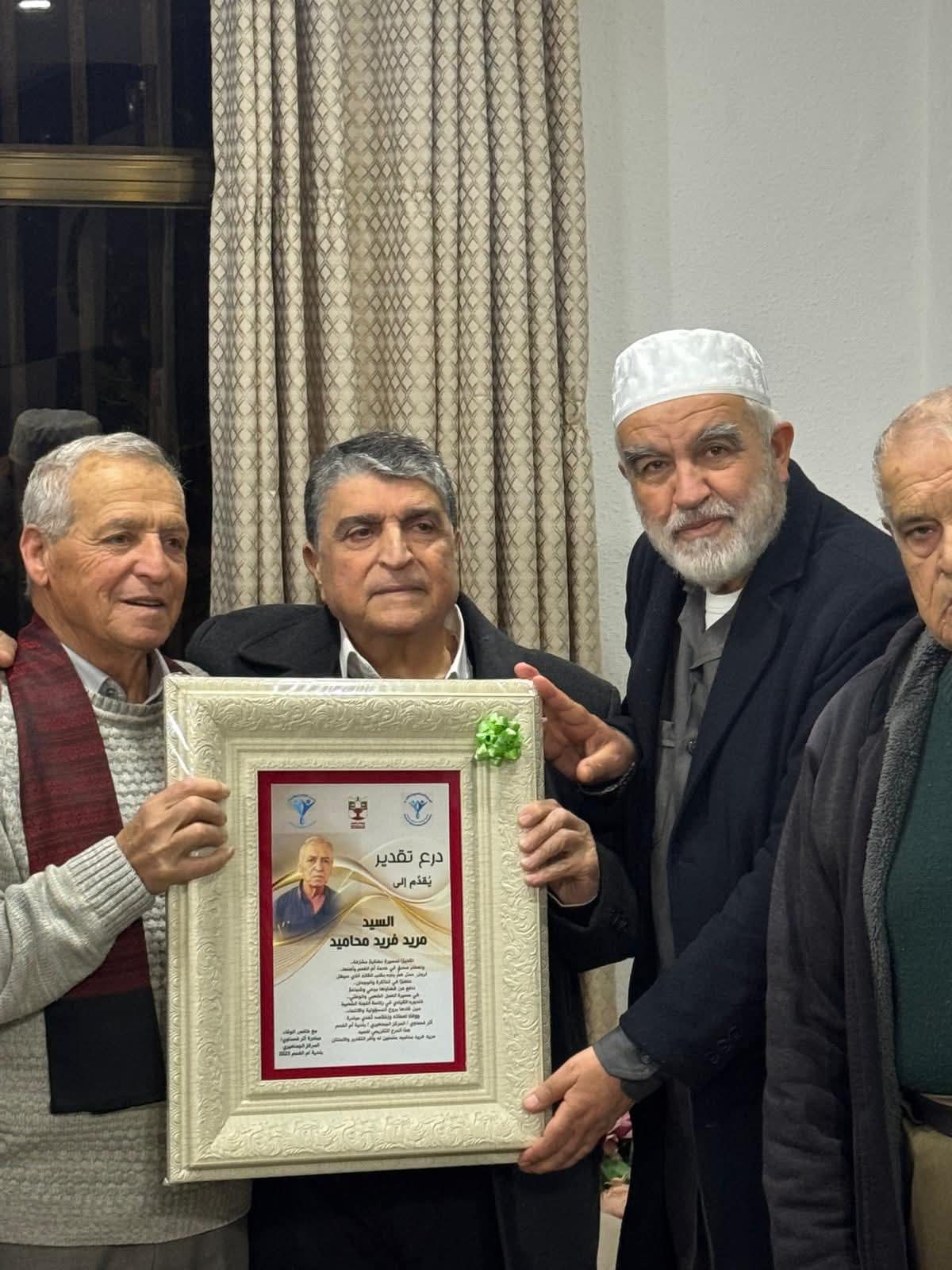 المناضل الفحماوي السيد مريد فريد محاميد، تقديرًا لمسيرته الحافلة بالعطاء، ودوره النضالي والسياسي والاجتماعي، وما تركه من أثر وطني وإنساني مشرّف أسهم في رفعة اسم مدينة أم الفحم، ورسّخ حضورها في ميادين الفعل الوطني والجماهيري.