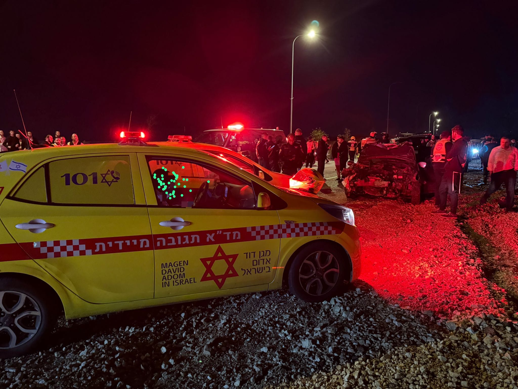 باسم نجمة داوود الحمراء، انه "في الساعة 01:33 تم تلقي بلاغ في مركز الطوارئ 101 التابع لنجمة داوود الحمراء في منطقة اليركون، عن حادث طرق بين سيارتين على شارع 4711 قرب مدينة إلعاد.